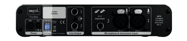 Introducing the SPL Pre One Microphone Preamp! SPL has just announced the new SPL Pre One Microphone Preamp. The SPL Pre One is equipped with two preamplifiers. These have a discrete design and they are tuned for an open and transparent sound characteristic. In addition to the microphone input, the second preamplifier also features a Hi-Z instrument input – so instruments like electric guitars, for example, can benefit from the sound of the Pre One. In terms of technology and sound, the preamps have the same characteristics as those in the SPL Channel One Mk3! The gain control can be used to adjust the preamplifcation. The control range ranges between +8 and +62 dB – so even really demanding microphones can unfold their full potential! (The green signal LED indicates that a signal is present. For each of the two preamps, Flair and Contour provide an analog EQ preset to perfect the sound. When Flair is activated, it gives the signal an incredibly beautiful range of high frequencies – silky highs is the key word here. When Contour is activated, the signal perfectly blends into a compact mix while retaining its natural presence and strength. Each preamp also features a high-pass filter and a PAD switch.