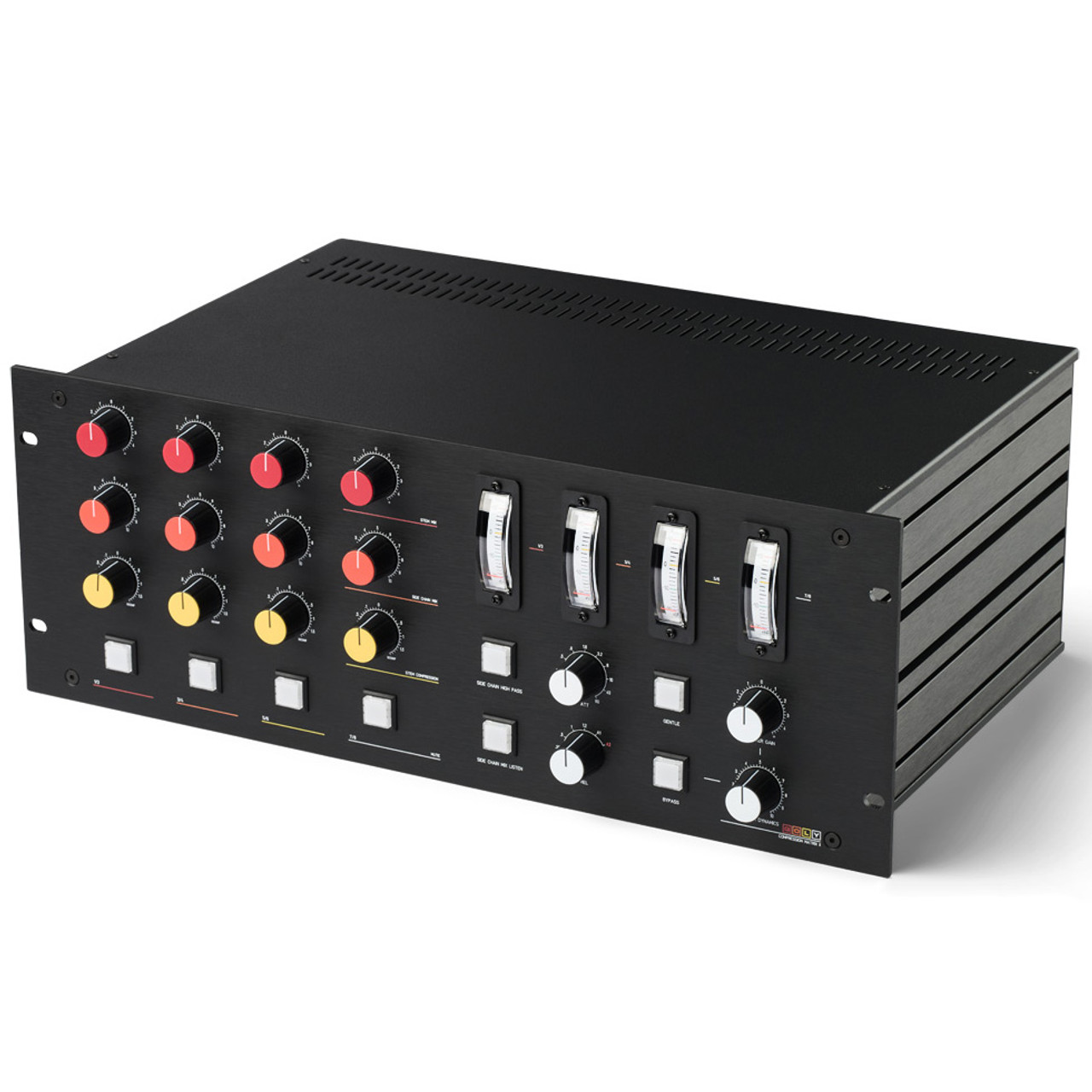 The Side Chain mixer adjust the levels going into the engine room of the master compression section. In essence, this lets you adjust what the compressor sees, and triggers off of. You can do odd things, like bring up elements further than they are in the signal path to push harder, back off bass elements to inject less low end, or just set them all flat, so everything goes into the side chain as per usual. What really matters is, how the SC Mix makes your compression react, but in the master section, you’ll find a “SC LISTEN” function, which routes the Side Chain Mix to the output for auditioning. (Please note the fidelity of the Side Chain Mix is lower than the fidelity of the actual signal path, if you want to use it creatively for processing).