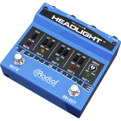 Whether you’re auditioning amps in the studio, routing guitars to different rigs, or managing complex recording setups, the Headlight lets you connect a single guitar to up to four amplifiers with total confidence. Built with Radial’s uncompromising engineering standards, it ensures your tone remains intact while giving you instant access to a wide range of sounds. At the heart of the Headlight is Radial’s Class-A active circuitry and custom isolation transformers, which preserve the natural feel of your instrument while eliminating hum, buzz, and ground loops. Each amplifier output features level trim and Drag™ control to optimize pickup loading and response, ensuring every amp feels and reacts exactly as it should. With remote footswitch compatibility, rackmount design, and bulletproof steel construction, the Headlight is a powerful, flexible tool for professional studios and touring guitar rigs alike.
