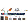 - Routes one guitar or bass signal to up to seven simultaneous outputs