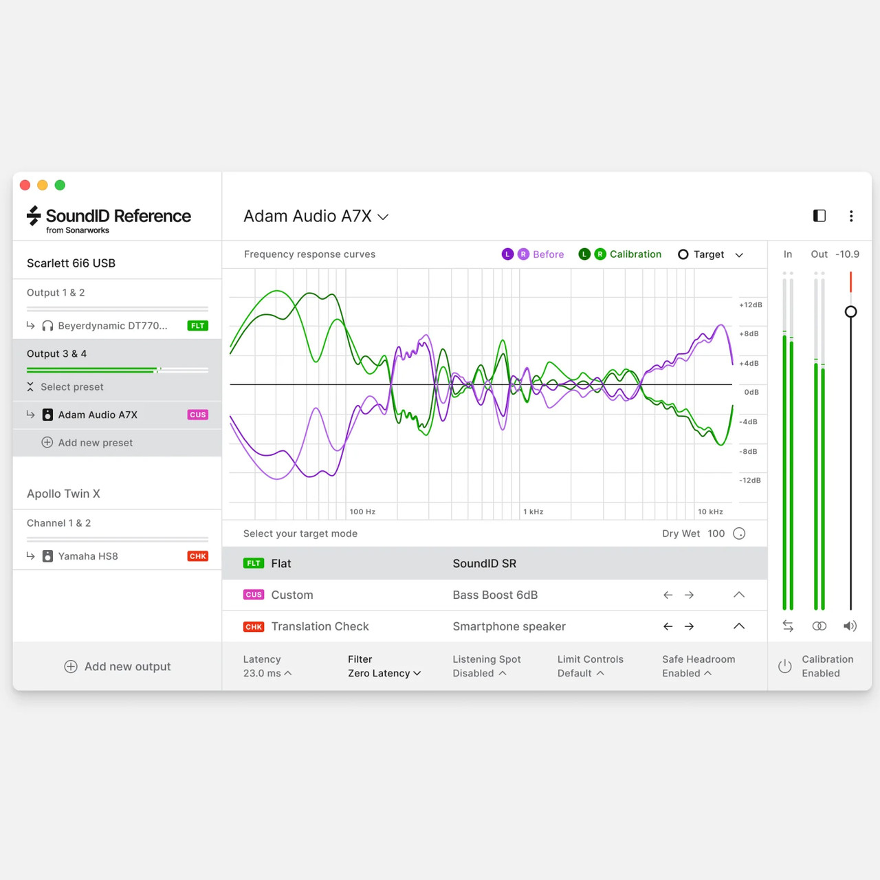 Even the best speakers can't compensate for the acoustics of a poorly designed room. SoundID Reference compensates for that by measuring the frequency response of your room and speakers to create a calibration profile. For headphones - simply apply a pre-made calibration profile available in the software. With calibration applied, your music will sound great everywhere.