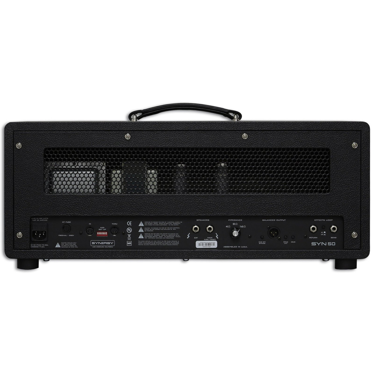The Synergy SYN-50 Modular Head boasts immaculate cabinet simulated direct output, MIDI programming, and a transparent effects loop that makes it as useful in the home studio as it is screaming through an arena.