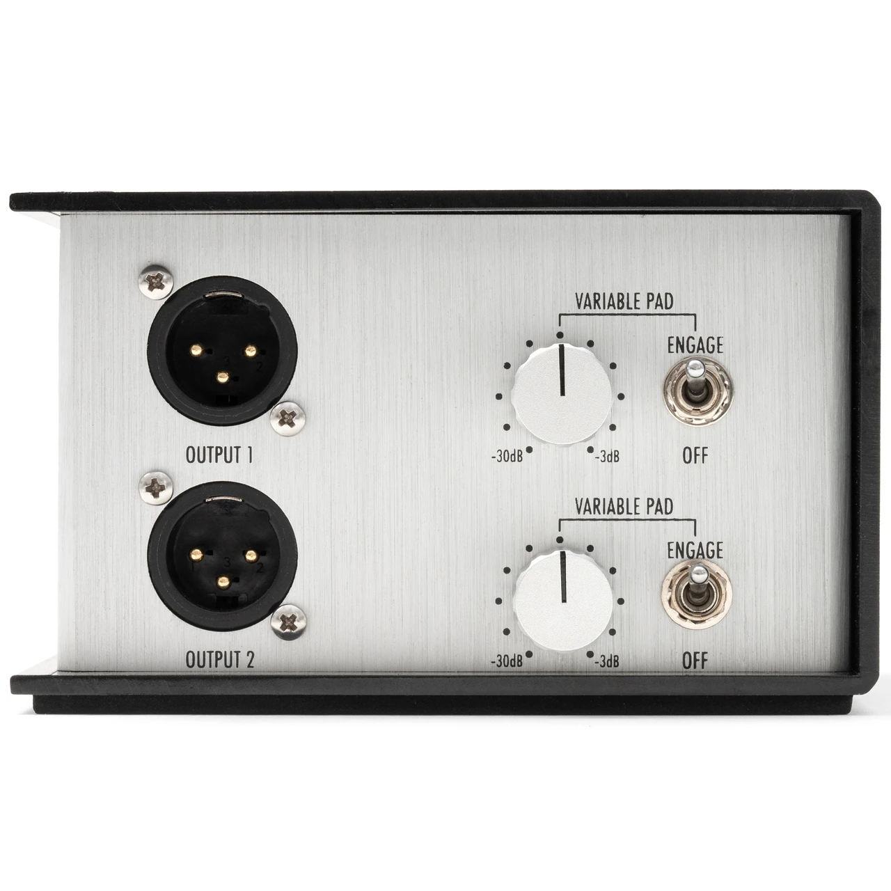Built for professional studio and live environments, this two-channel passive DI is ideal for keyboards, synths, drum machines, and stereo playback rigs - providing balanced outputs with exceptional clarity and minimal signal coloration. At the heart of the Passive Stereo DI are premium CineMag USA transformers, ensuring excellent signal integrity, isolation, and noise rejection. Its fully passive design requires no external power, making it an easy, dependable solution for high-output sources and stage setups where simplicity and reliability are essential. By converting instrument-level signals to balanced mic-level outputs, it allows seamless integration with mixers, audio interfaces, and PA systems while maintaining the full character of your source. In practical use, the Passive Stereo DI excels in both studio and live applications. Whether you’re connecting stereo keyboards, electronic drum modules, or playback systems, it provides consistent performance across both channels with minimal setup. With a variable pad for level control and a ground/lift switch to eliminate hum, it’s a straightforward, professional tool designed to get the job done without complication.